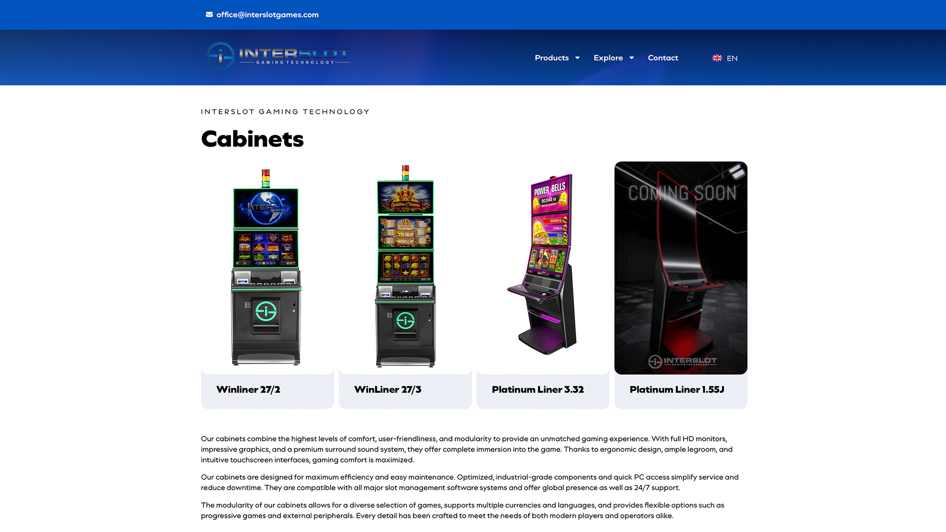 We developed the complete website for Interslot Gaming, a slot machine manufacturer based in Vienna.